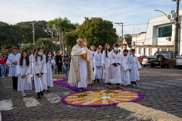 A tradicional confecção dos tapetes de Corpus Christi ocorreu na última quinta-feira, dia 16 de junho. Mais de 60 tapetes, que formaram um terço no entorno da Praça Matriz, foram desenvolvidos por entidades, empresas e escolas do Município de Cotiporã. O projeto teve como tema municipal: “Mãos que desenham a fé!”, ancorado pela Campanha da Fraternidade 2022. Além da confecção dos tapetes, foi realizada Missa na Igreja Matriz, celebrada pelo Pároco Padre Gilberto Lazzarotto, e procissão de Corpus Christi.