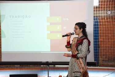 As turmas do Ensino Médio da E.E.E.M. Prof. Jacintho Silva e do Ensino Fundamental Anos Finais da E.M.E.F. Caminhos do Saber participaram de palestra com a 3ª Prenda Juvenil do Rio Grande do Sul Amanda Bissani Tonial, sobre o Dia do Gaúcho, a importância das nossas tradições e o tema Festejos Farroupilhas, que em 2024 é “O centenário de Jayme Caetano Braun”.
