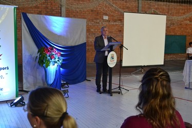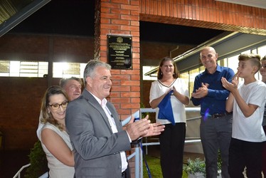 Na sexta-feira, dia 8 de março, a Escola Municipal de Ensino Fundamental Caminhos do Saber realizou a cerimônia de inauguração da revitalização do ambiente e comemoração aos quinze anos da instituição. A solenidade iniciou com a apresentação da Orquestra Jovem de Cotiporã, regida pelo Maestro Juliano Farenzena e, em seguida, o aluno Pietro Bianchi, representante do Conselho Escolar apresentou o histórico da escola que completa 15 anos de existência. A revitalização da escola, realizada neste ano, contempla a pintura interna e externa do prédio, pintura das estruturas metálicas no pátio e aberturas das portas de ferro, pintura e lavagem do telhado e reformas na parte térrea. Os serviços foram prestados pela Construtora e Incorporadora Bonatto Eireli. Em seu pronunciamento, a Secretária de Educação e Desporto Elizabete Ramansini, afirma que a revitalização é importante e significativa para todos que fazem da instituição seu segundo lar. “Nada melhor como parabenizar a escola pelos seus 15 anos com a revitalização do prédio. Junto com a Administração Municipal buscamos oferecer um ambiente qualificado e acolhedor a todos que usufruem do espaço, melhorando cada vez mais a educação em nosso município”, concluiu a Secretária Elizabete. O Prefeito Municipal José Carlos Breda agradeceu aos responsáveis pela construção da escola e a todos que contribuíram durante os quinze anos de instituição para o crescimento da escola. Breda afirmou que todos os investimentos na educação são necessários e importantes para garantir a qualificação do espaço bem como o bem estar dos profissionais, alunos e funcionários. O Prefeito desejou sucesso e muitas conquistas a escola e parabenizou às mulheres pela passagem do seu dia. Após a solenidade, o Prefeito Breda, Vice Ivaldo, demais autoridades e comunidade escolar, descerraram a placa comemorativa à revitalização e aniversário da instituição. Além disso, os participantes puderam apreciar uma exposição de fotos referente aos quinze anos e as obras realizadas na escola. A cerimônia foi realizada no Ginásio da escola e contou com a presença das autoridades cotiporanenses, secretários, vereadores, presidentes e representantes de entidades, soberanas da 8ª Festa In Vêneto, profissionais, pais, alunos e funcionários da instituição. Atualmente, a equipe diretiva é composta pela Diretora Lilian Zechin, Vice-Diretora Graziela Anceski, Coordenadoras Pedagógicas Giovana Lira e Liziane Wons Zardo e a instituição dispõe de 28 professores e 6 funcionárias, atendendo a 237 alunos.