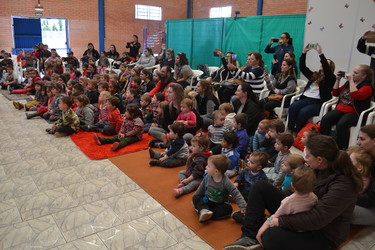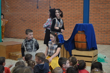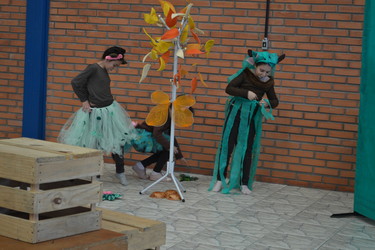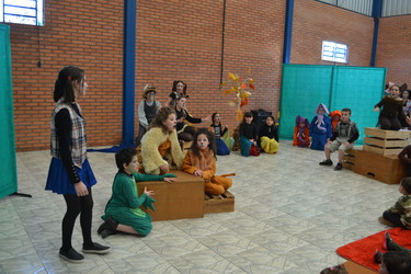 Buscado promover momentos de cultura, arte e diversão aos alunos, na última segunda-feira, dia 23 de setembro, a Escola Municipal de Educação Infantil Amor e Carinho contou com a apresentação da peça teatral “Bicho Folhagem” interpretada pelo grupo infantil da Cia Teatral “Tem Gente No Palco”, de Veranópolis. A peça foi baseada na história “O Bicho Folhagem” do livro “Histórias da menina da Rua da Ponte”, escrito por Adelsin. Os pequenos artistas trouxeram de forma lúdica, temas como comportamento, caráter e convívio em harmonia.