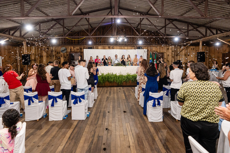 No dia 15 de dezembro, os jovens concluintes do Ensino Fundamental e suas famílias realizaram a cerimônia tradicional que marca o encerramento desta etapa escolar e, juntamente com as autoridades municipais e os profissionais da Escola, o momento foi de comemoração e finalização de um importante ciclo.