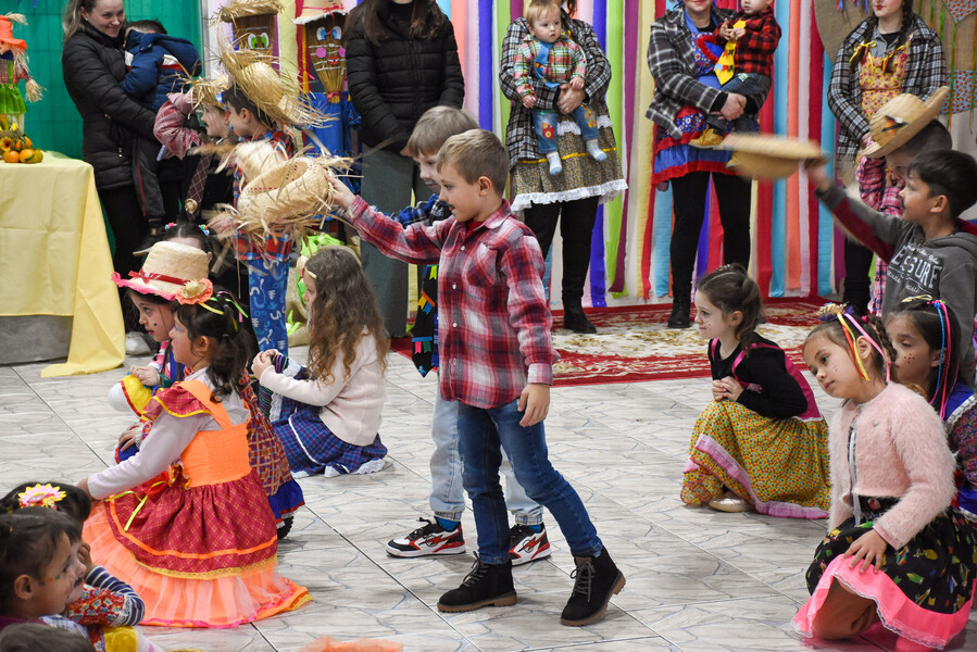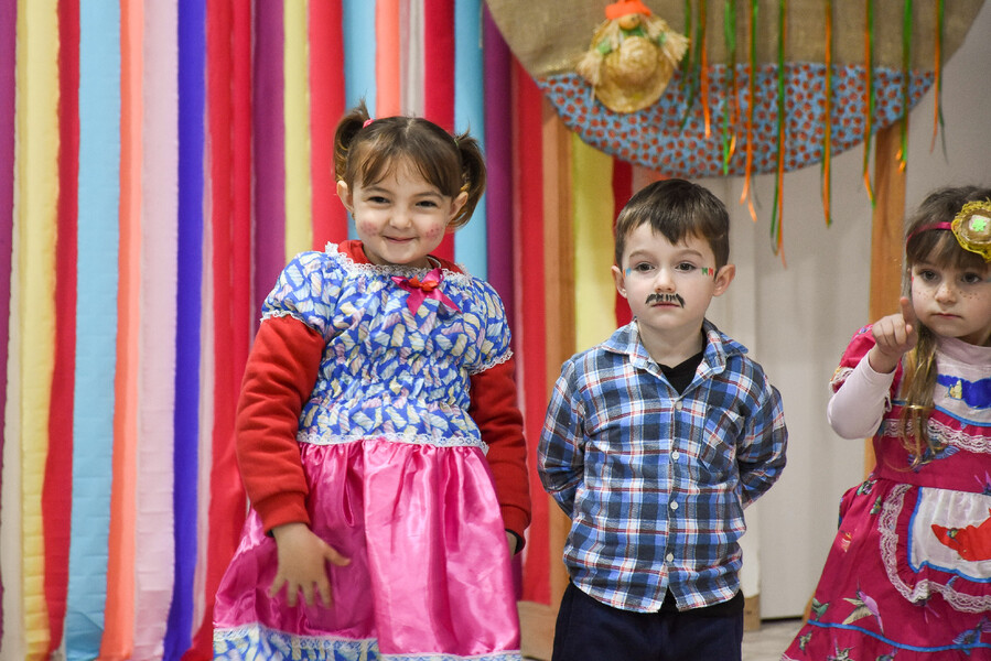 A Escola se reuniu para que os pequenos realizassem apresentações com músicas e trajes típicos! Além disso, a comemoração incluiu comidas e brincadeiras típicas juninas que divertiram as turminhas.