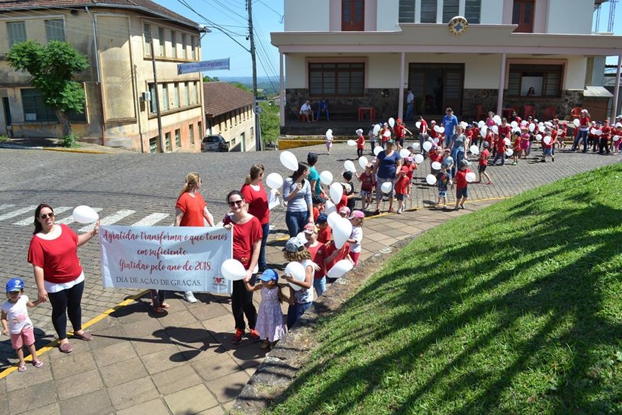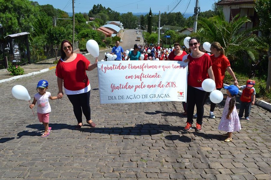 Como forma de agradecer as conquistas de 2018, os alunos, equipe diretiva, professores e funcionários da Escola Municipal de Educação Infantil Amor e Carinho realizaram uma caminhada para celebrar o Dia de Ação de Graças. Na data, as pessoas se reúnem para agradecer, dando graças a Deus pelas bênçãos recebidas durante o ano.