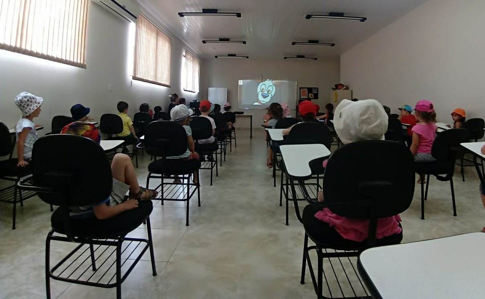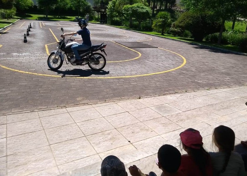 Além de conhecer o espaço, os pequenos participaram de um bate papo com a Diretora do CFC Luciana Generali Barni sobre como é realizada a formação dos condutores e a importância do cuidado e respeito no trânsito.