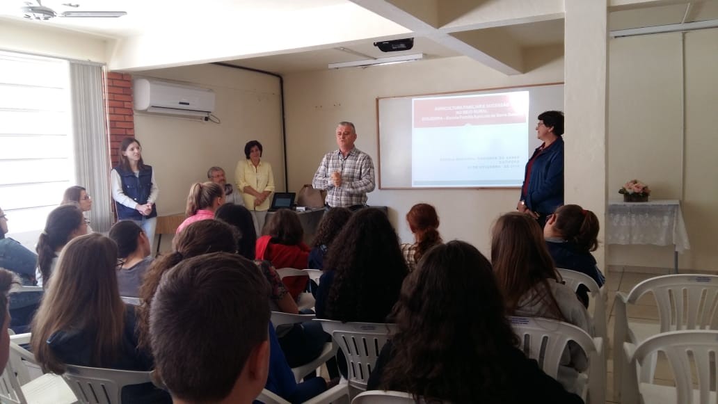 Na ocasião, o Professor Arnaldo Poletto e a Diretora Sonia Beatriz Sbersi apresentaram a metodologia da escola de ensino médio com técnico em agropecuária. Segundo o Prefeito Breda, a reunião foi realizada para apresentar diferentes propostas de ensino aos alunos e possibilitar o esclarecimento de dúvidas e conversa sobre o tema.