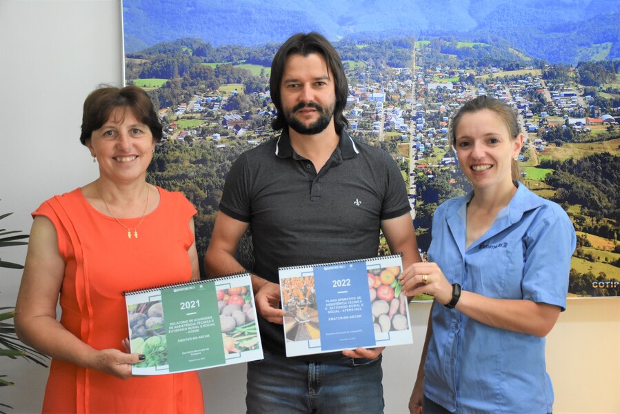 Nesta semana, o Prefeito Ivelton Mateus Zardo recebeu a equipe do Escritório Municipal da Emater, a qual esteve apresentando o Relatório de Atividades de Assistência Técnica e Extensão Rural e Social, referente ao exercício de 2021, bem como o planejamento de ações para o ano de 2022.