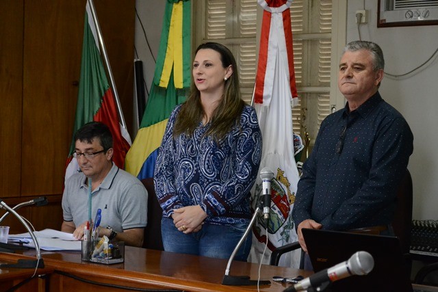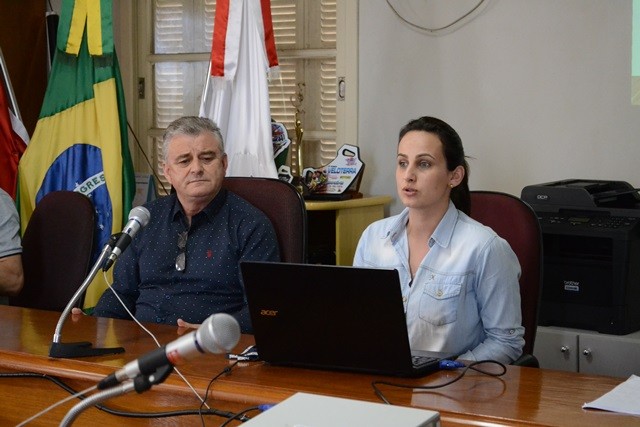 O Prefeito Municipal José Carlos Breda, Secretária da Fazenda Elisandra Scussel e o Contador Lúcio Lunardi explanaram o total de estimativas de receitas e fixação de despesas para o próximo ano.