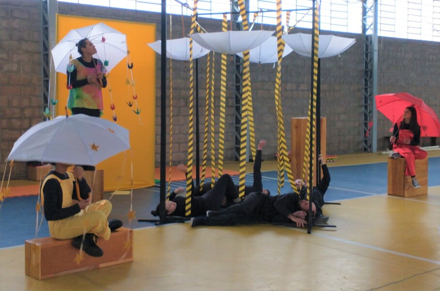 Através do espetáculo “Sobre Asas de Papel”, o grupo Arte in Cena propôs uma reflexão sobre o que move ou aprisiona professores e alunos nas escolas, destacando o papel fundamental de professores e pais, como aqueles que encorajam, inspiram o voo, a transposição de obstáculos em busca da realização e concretização dos sonhos.
