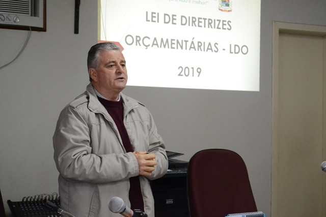 Para atender as necessidades da população e definir o destino dos recursos públicos, aconteceu na segunda-feira (20) audiência pública para discussão e elaboração da Lei de Diretrizes Orçamentárias - LDO, para o ano de 2019. A apresentação foi conduzida pelo Prefeito Municipal José Carlos Breda, Secretária da Fazenda Elisandra Scussel e técnico em contabilidade Lucio Lunardi.