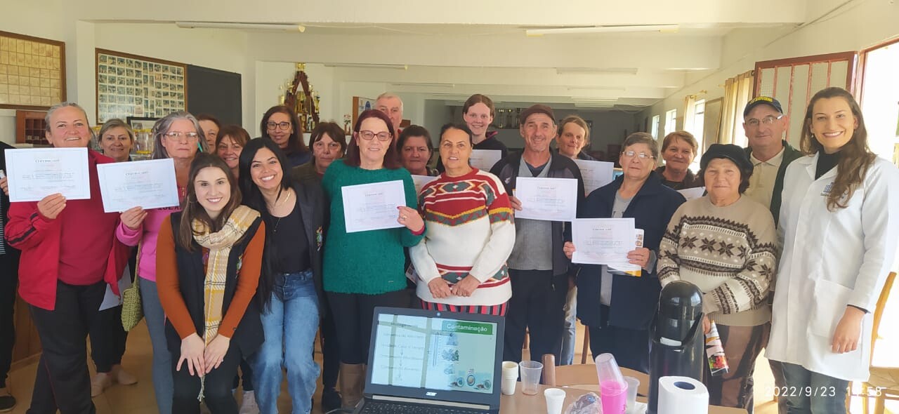 As profissionais da Secretaria de Saúde e Assistência Social de Cotiporã, Fiscal Sanitária Bárbara Costa, Nutricionista Aline Cenci e a Biomédica Rafaela Breda, realizaram, na última semana, o 3º encontro da capacitação “Cardápio Seguro” - Boas Práticas com Alimentos.
