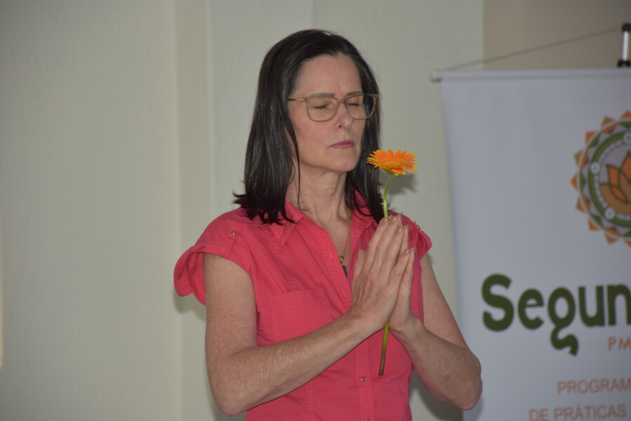 A prática meditativa foi guiada pela Terapeuta Holística Daniela Petuco, momento em que as participantes puderam centrar-se em si mesmas e desfrutar dos benefício que as terapias integrativas proporcionam. Na ocasião, foi realizada uma meditação guiada e uma atividade com gérberas. 🌼