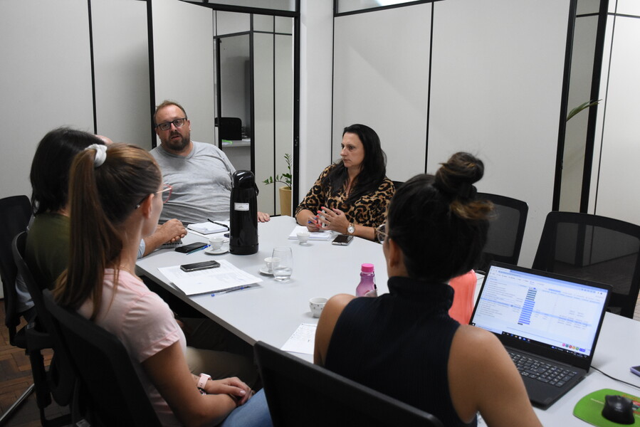 O grupo esteve conversando sobre trabalhos em andamento e projetos futuros, alinhando expectativas, planejando a diminuição de custos, entre outras pautas.
