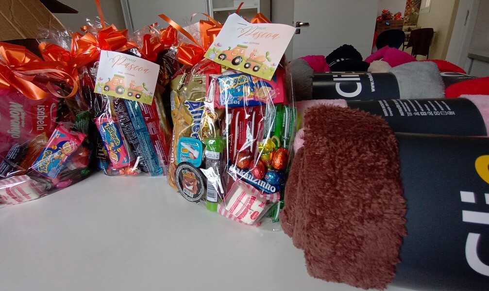 Por isso, as crianças ganharam de presente um pacote com diversos doces e uma manta de microfibra, em função da chegada do outono/inverno. Com os doces e o agasalho, os kits representam zelo e aconchego, tão essenciais para os pequenos cidadãos.