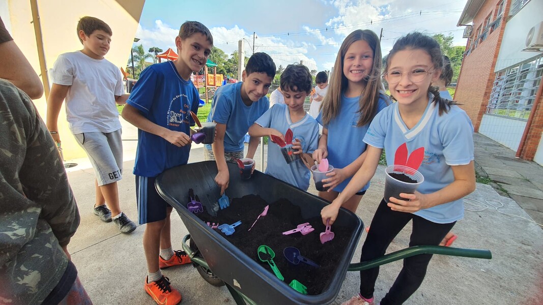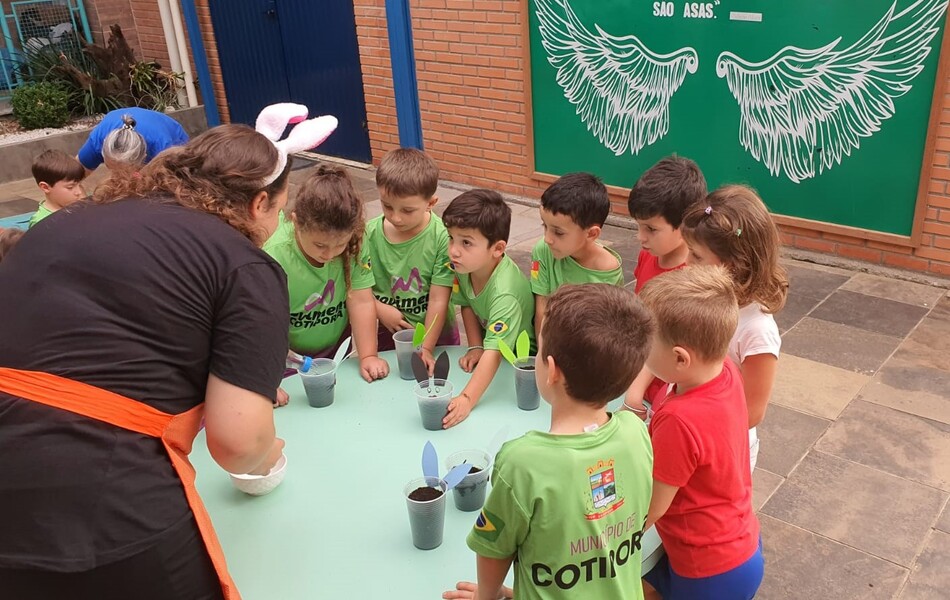 Eles também aprenderam que esse cuidado dispensado com a plantinha deve ser o mesmo zelo e carinho que devemos ter para com a nossa família, amigos, profesores e todos que nos cercam. Dessa forma, já introduzindo nos pequenos, de forma lúdica, os valores e ensinamentos da Páscoa, que são tão importantes para a vida de todos nós.