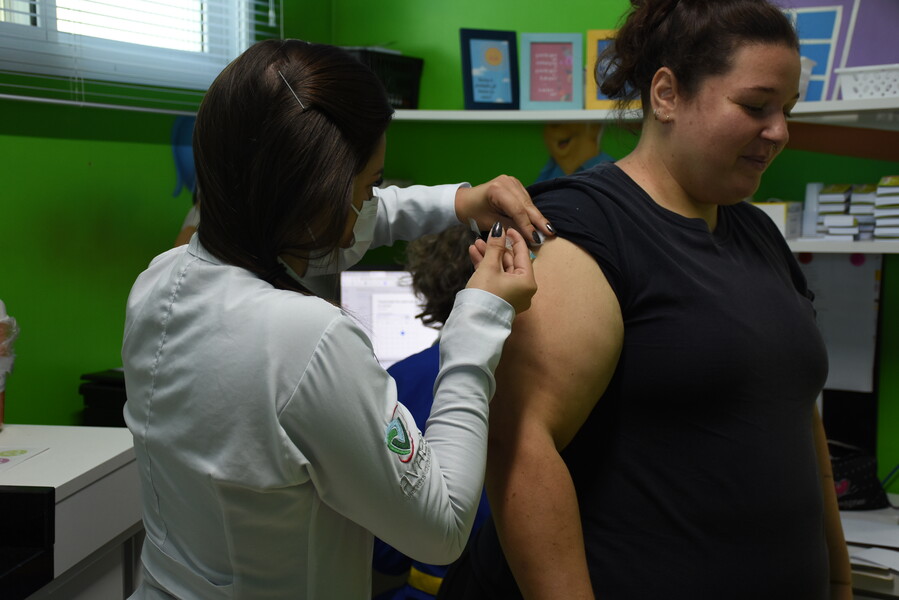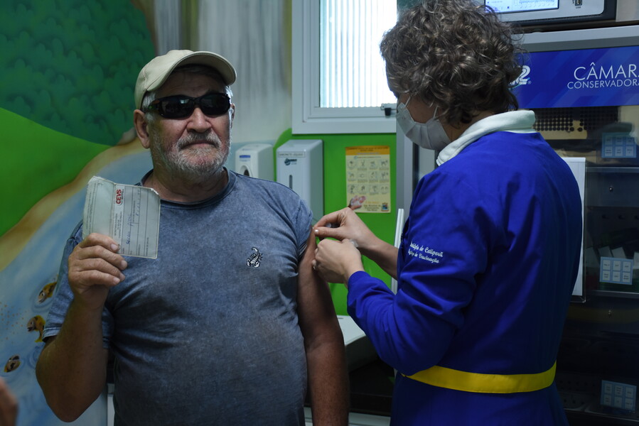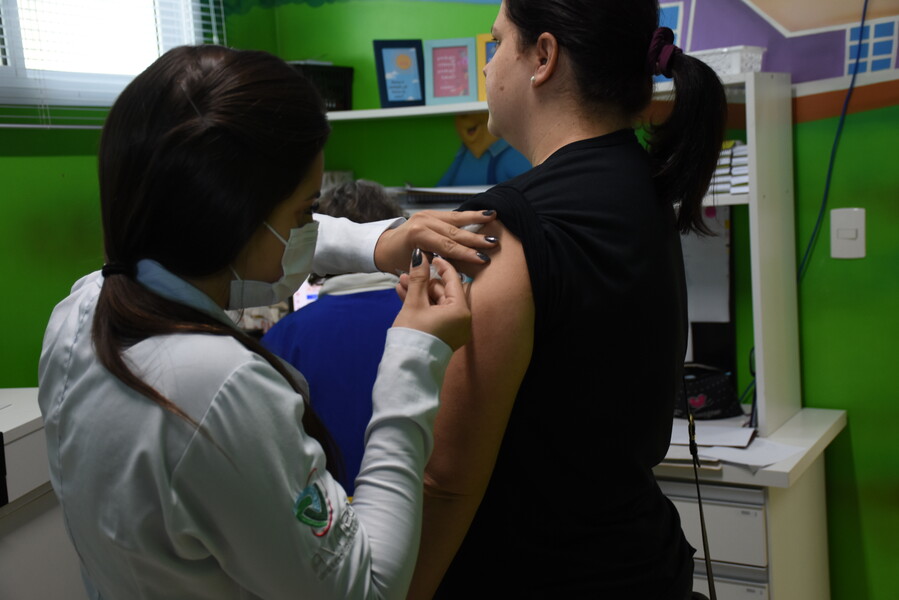 Desse modo, na Sala de Vacina da Unidade Básica de Saúde, as profissionais da saúde estavam aplicando doses contra COVID-19, Gripe Influenza, além de vacinas de rotina.