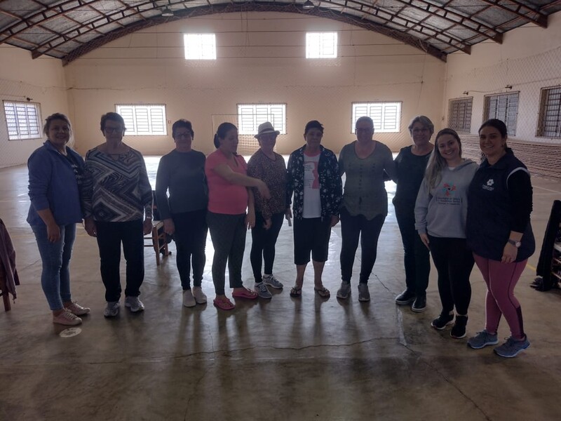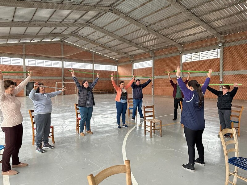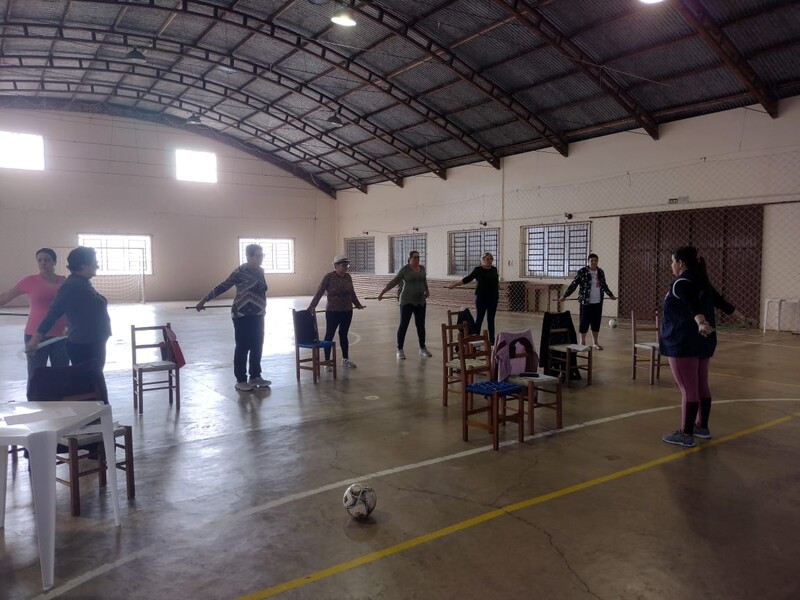 Atividades coletivas guiadas pelas profissionais do Programa Academia da Saúde estão sendo realizadas em comunidades do interior.