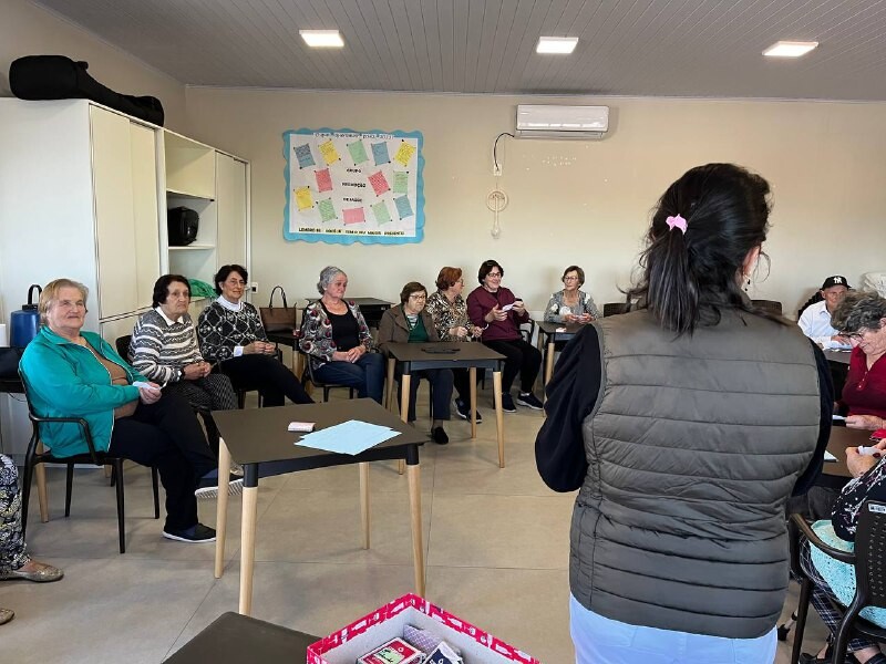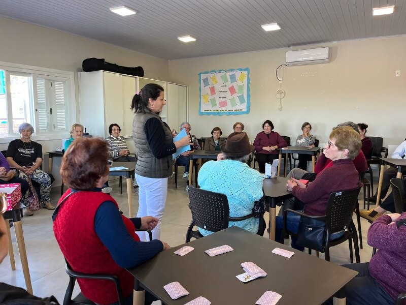 Nessa tarde, a farmacêutica Roberta de Freitas conversou com os presentes sobre o tema “Saúde Mental”. Além do debate proposto pela profissional, eles realizaram um momento de fé com orações, tradicionais jogos de cartas e um lanche.