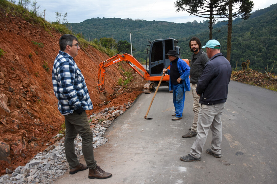 O Prefeito Ivelton Mateus Zardo, o contador da Prefeitura Lúcio Lunardi e o Secretário de Obras Valdir Falcade estiveram acompanhando a obra junto aos servidores que estavam trabalhando.