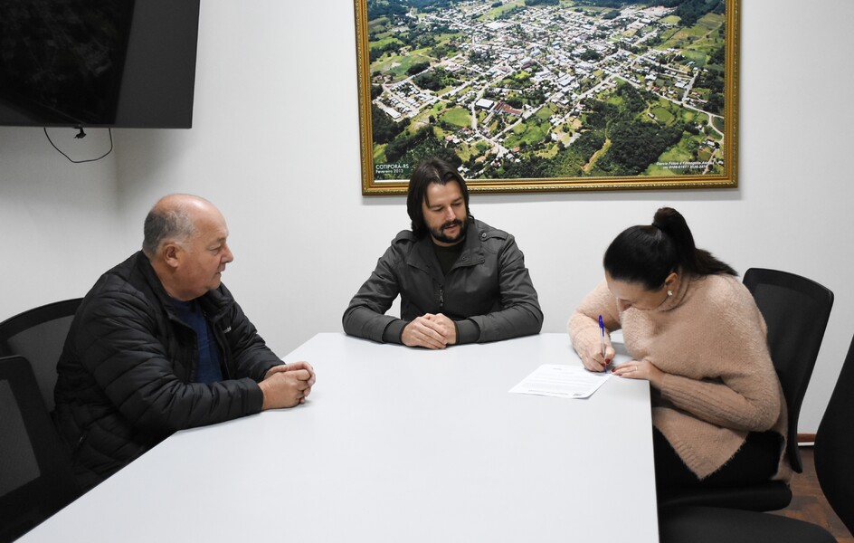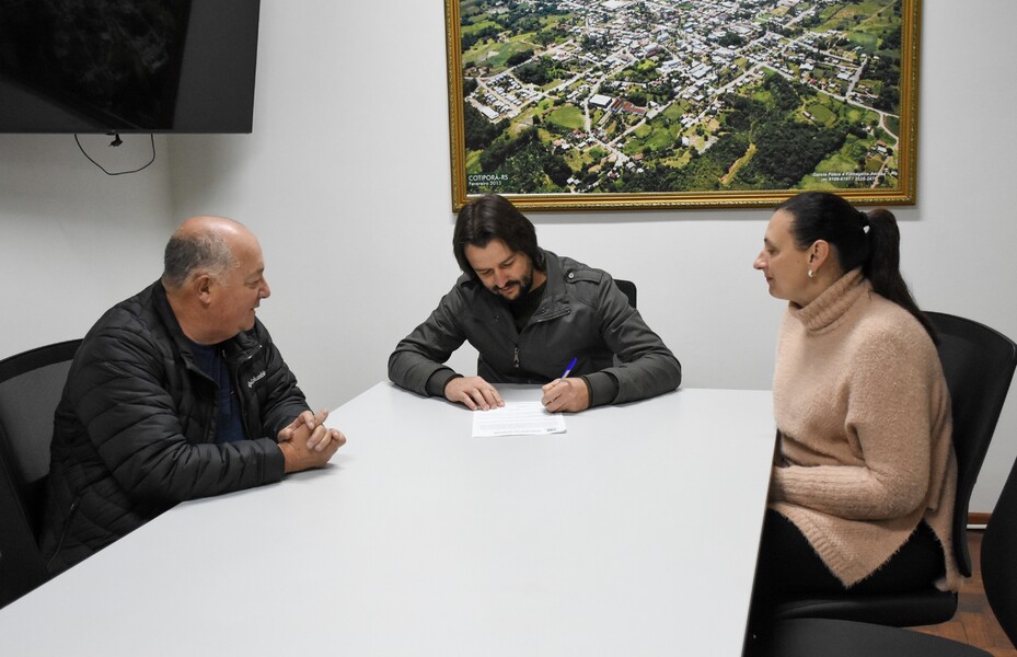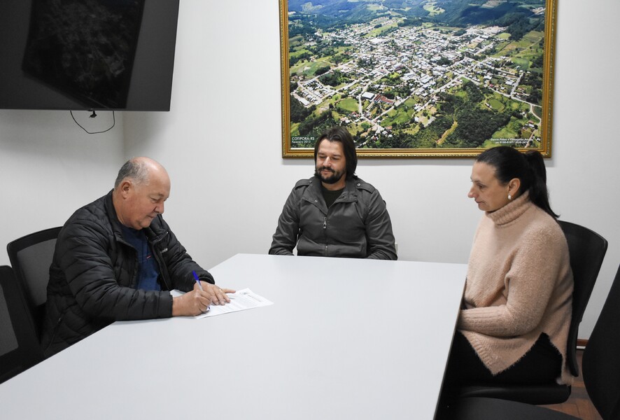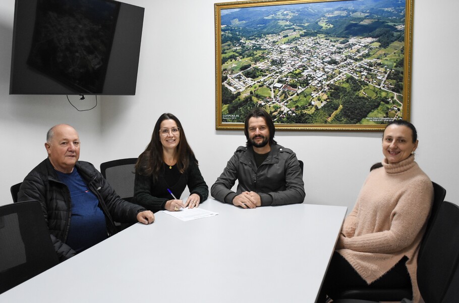 O Prefeito Ivelton Mateus Zardo, a Vice-prefeita Lenita Zanovello Tomazi e a Secretária de Educação e Desporto Lilian Zechin receberam o atual presidente da entidade Ramon Dallago para oficializar o termo aditivo por meio das assinaturas.