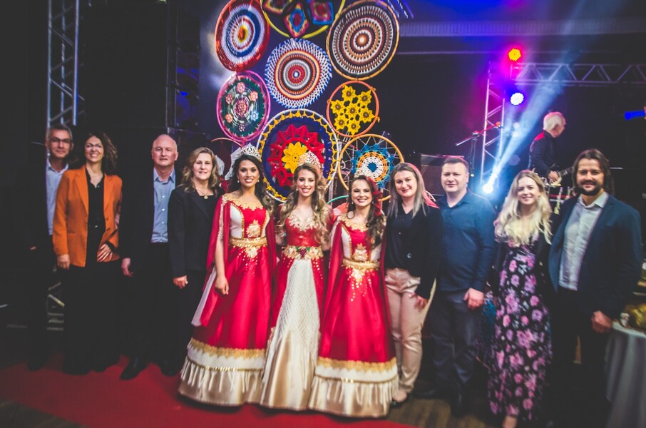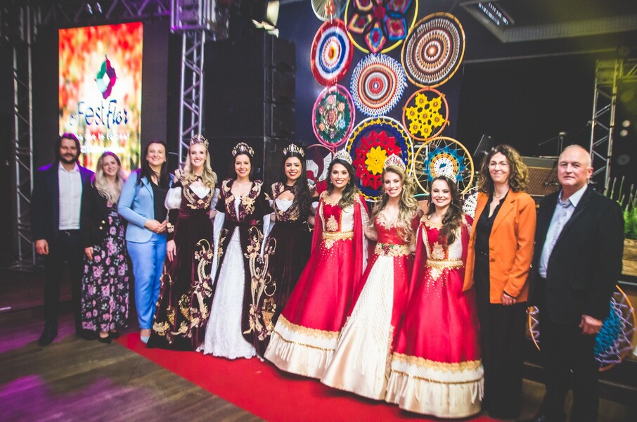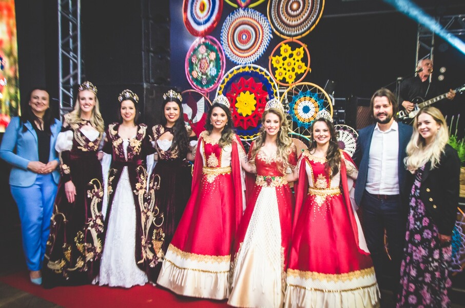 A noite contou com a apresentação do traje das soberanas, da programação, das atrações e divulgou novidades como o 1º Festival do Pão Frito.