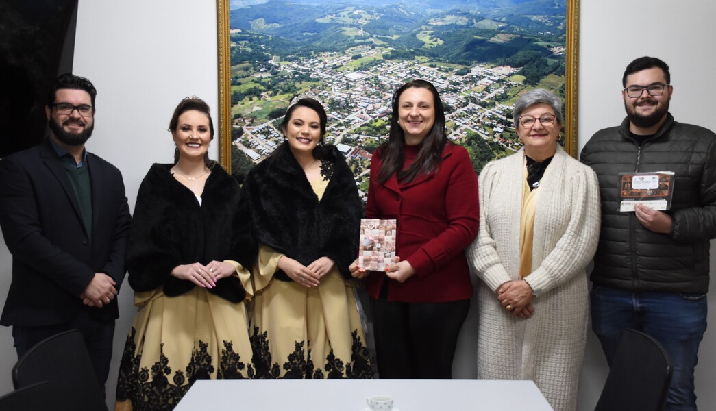 A Vice-prefeita Lenita Zanovello Tomazi e o Secretário de Turismo e Cultura Thomas Franco Tres receberam a Vice-prefeita de Nova Prata Sandra Zottis, o Presidente da 4ª Expo Prata e 3ª Agro Feira Sicredi Thiago Giaretta, e as soberanas do evento, princesas Andressa Pereira Gonçalves e Taciane Zanella.