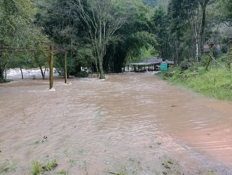 O arroio Vicente Rosa também aumentou muito suas proporções normais de água, fazendo com que mais regiões de Cotiporã estejam atualmente afetadas pela chuva.