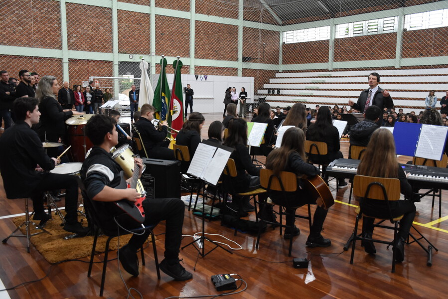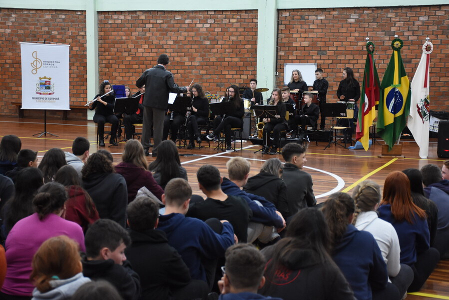 Nesta ocasião, contamos com os pronunciamentos da Prefeita em Exercício Lenita Zanovello Tomazi, do Presidente da Câmara de Vereadores Renan Lunardi e do Pároco Padre Gilberto Lazzarotto. Após, a Orquestra de Sopros de Cotiporã realizou belíssima apresentação a todos os presentes.