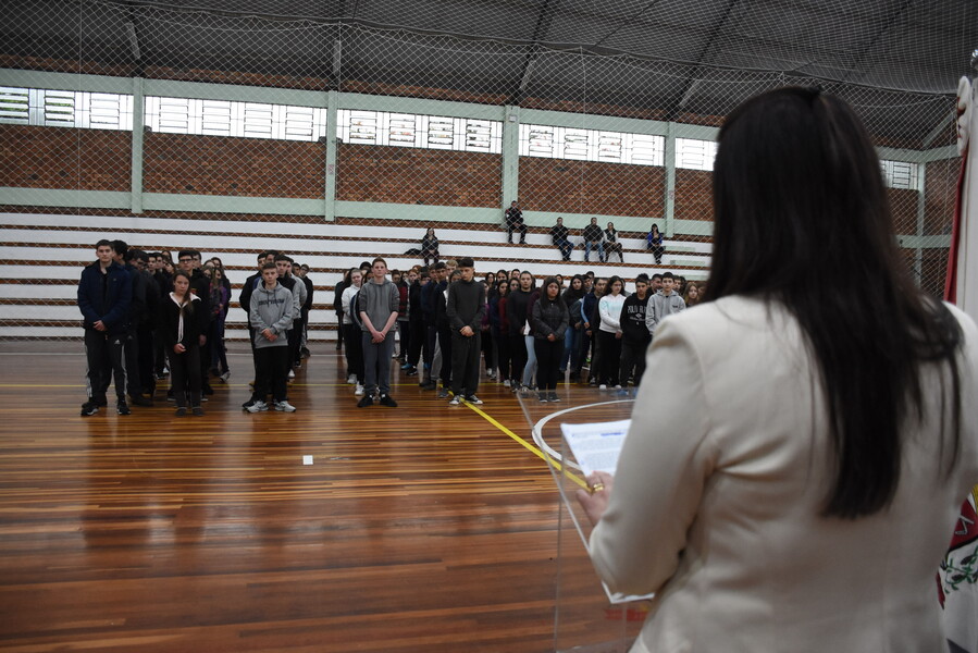 A ação ocorreu no Ginásio Municipal de Esportes Edyr Carlos Fellini e contou com a presença de autoridades, entidades e escolas.