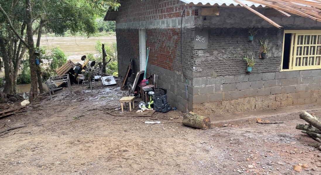 Em vídeo, morador cotiporanense relata a sua situação, tendo em vista que teve a sua residência atingida pela enchente do Rio das Antas.