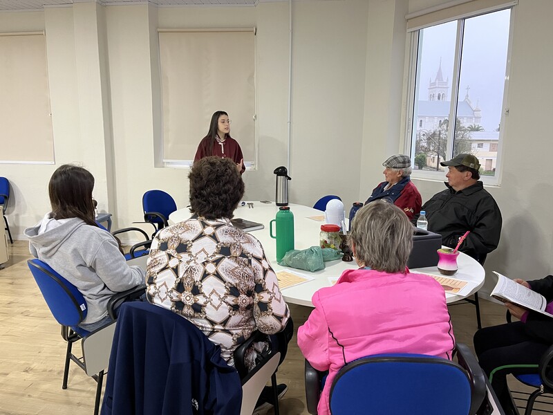 Por isso, no encontro que ocorreu hoje (13), pela manhã, a atividade contou com a explanação dos benefícios de ingerir a infusão, bem como uma breve retomada histórica e cultural deste costume. Realizou a atividade, junto com a fisioterapeuta Luana Moraes Giacomini e a nutricionista Gabriela Nespolo, a prenda Táila Bergamin Kemerich.