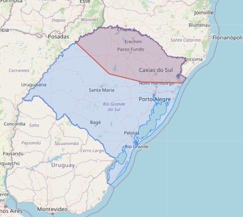 Coordenadoria Regional de Proteção de Defesa Civil envia alerta de Chuvas Intensas emitido para as áreas em destaque no mapa.