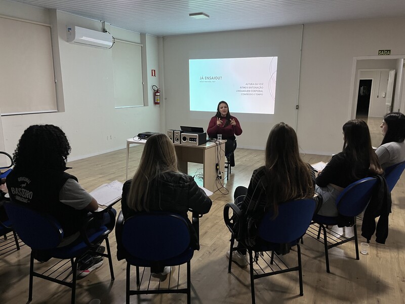 Em encontro com a jornalista Ana Júlia Griguol, no dia 08 de setembro, as representantes puderam ter noções de comunicação e de postura.