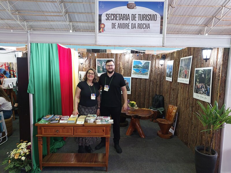 Na ocasião, o Secretário Thomas Tres e a Coordenadora de Turismo Bárbara Roberta Scarton Taffarel estiveram no Estande da Rota Turística Termas e Longevidade.