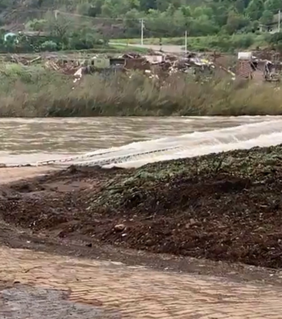 A elevação do nível data da madrugada de hoje (05), na ponte que liga Cotiporã a Bento Gonçalves.