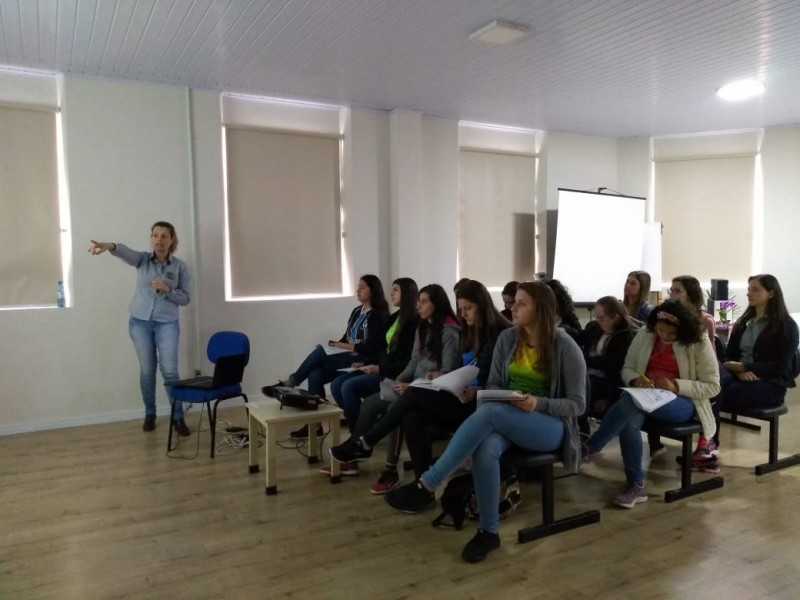 Na manhã do dia 11 de setembro, as candidatas a Rainha dos Esportes de Cotiporã participaram de um bate-papo com a Nutricionista da Prefeitura Municipal Josiele Kesties.
