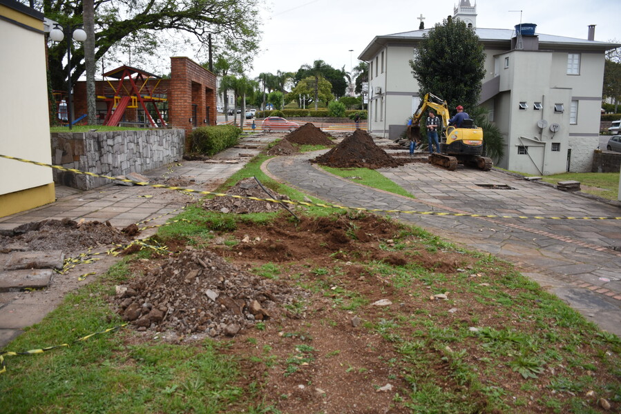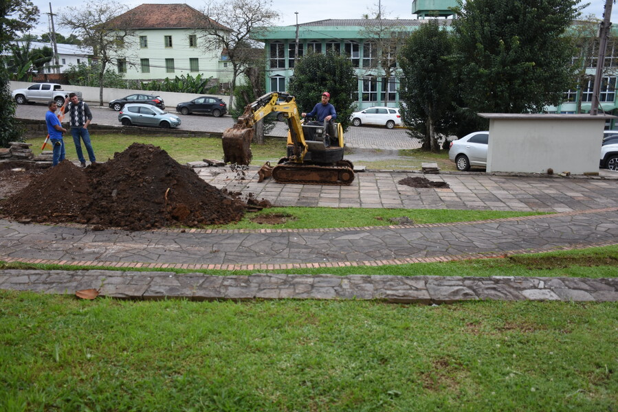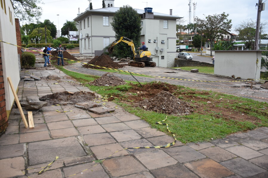 Ontem (19), iniciaram efetivamente os trabalhos de construção da área coberta.