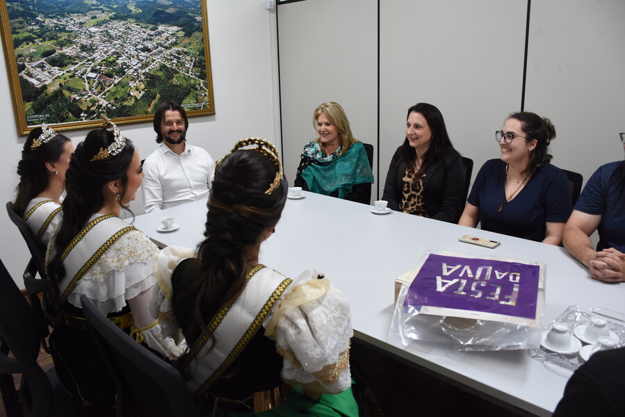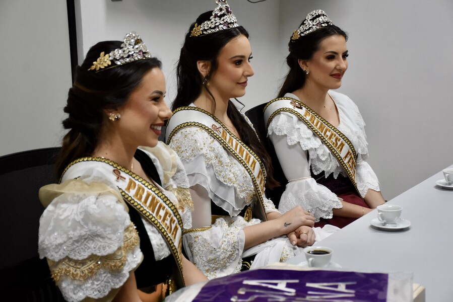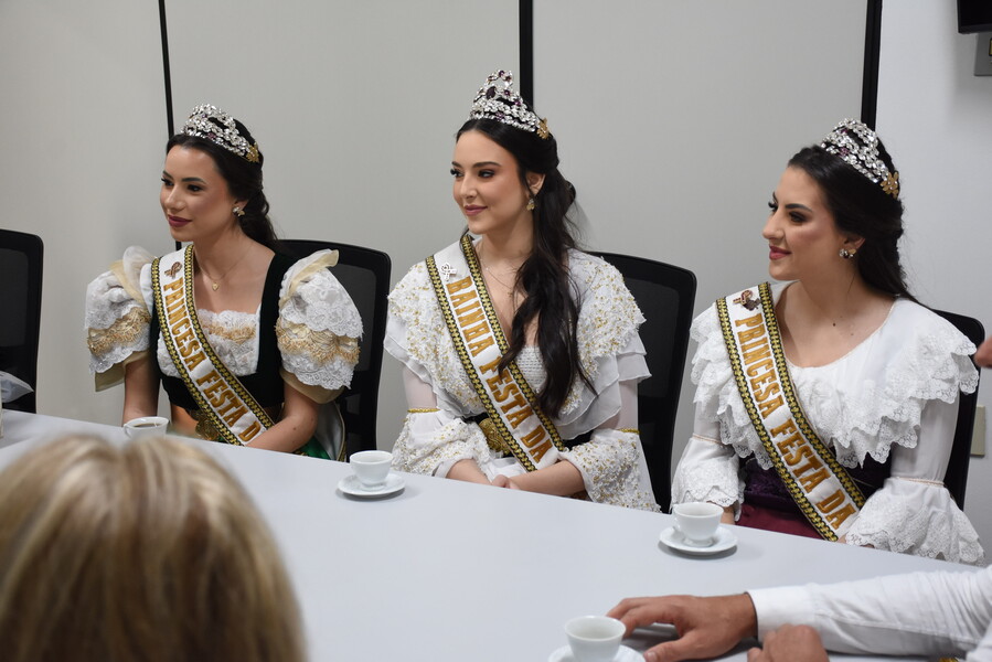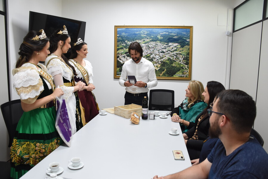 Na ocasião do encontro, as Soberanas Rainha Lizandra Mello Chinali e Princesas Eduarda Ruzzarin Menezes e Letícia de Carvalho, juntamente com a Vice-prefeita de Caxias do Sul Paula Ioris, também realizaram entrega de uma lembrança da Festa.
