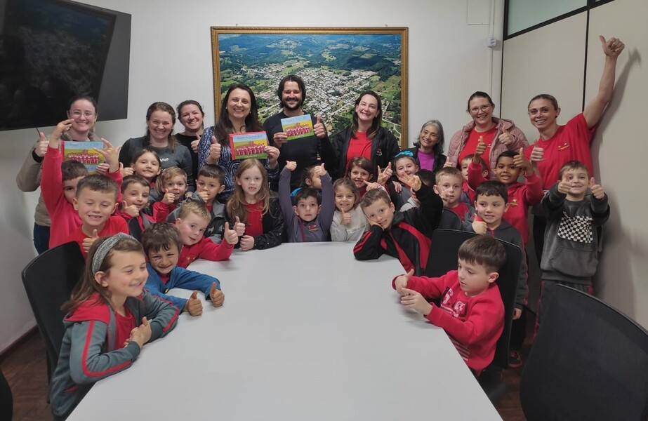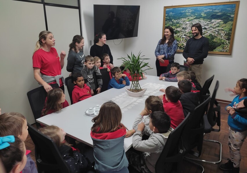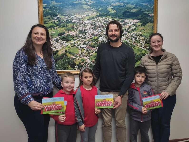 O convite foi entregue ao Prefeito Ivelton Mateus Zardo, à Vice-prefeita Lenita Zanovello Tomazi e à Secretária de Administração Joana Inês Citolin Zanovello e os alunos estavam acompanhados pela Vice-diretora, Coordenadora Pedagógica e Professoras.