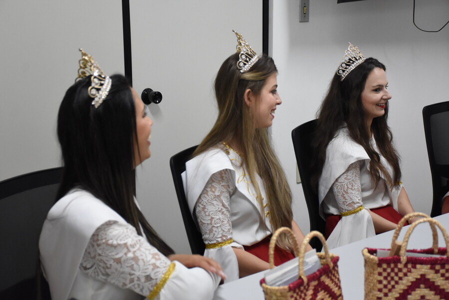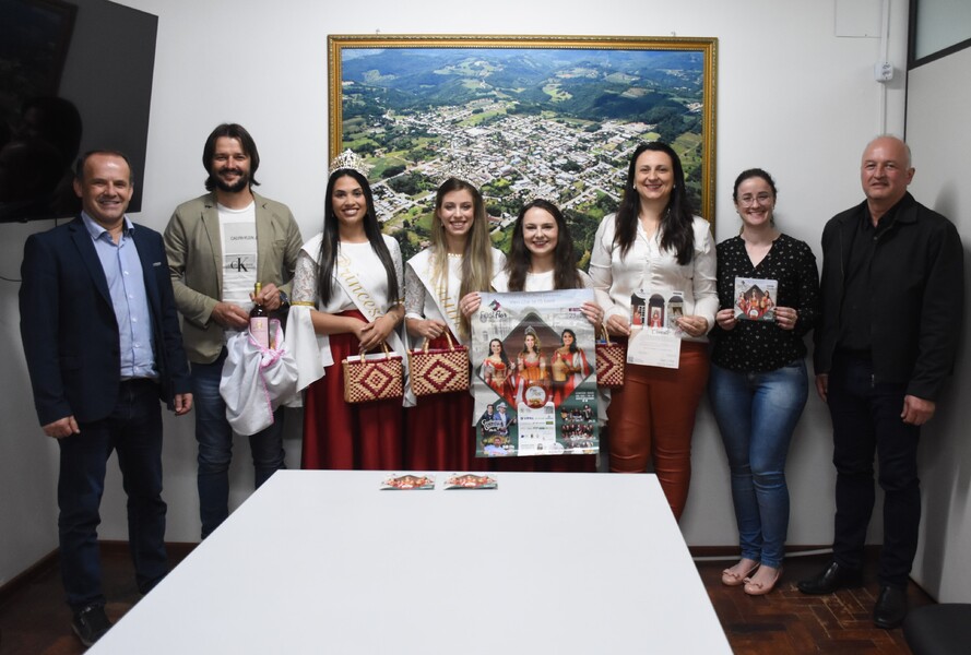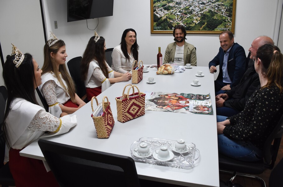 O Prefeito Ivelton, a Vice-prefeita Lenita e a Secretária de Administração Joana receberam a Rainha Juliana Furlan Deconto e as Princesas Marieli Ferreira e Angélica Cortellini Rui, juntamente com o Prefeito de Vila Flores, Evandro Antônio Brandalise, e o Presidente da FestFlor, Márcio Fiori.