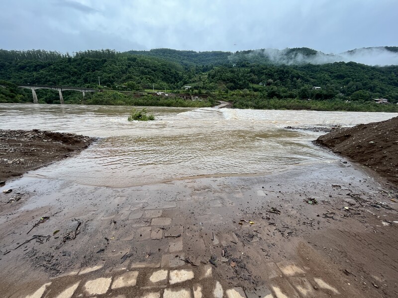 A ponte ficou submersa nesta madrugada e no momento não há previsão de liberação!
