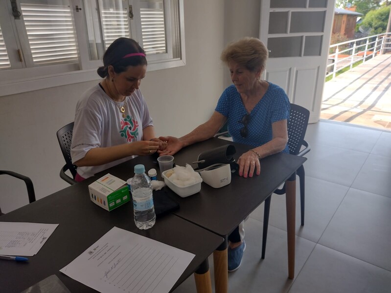 Na ocasião, a profissional fisioterapeuta Luana Moraes Giacomini realizou a verificação da pressão e da glicose dos participantes, em sua maioria idosos.