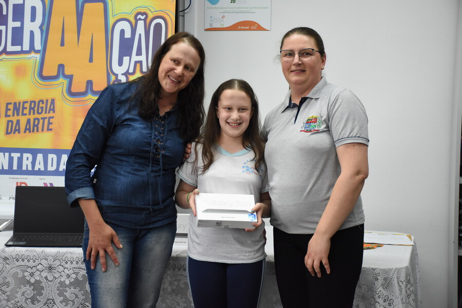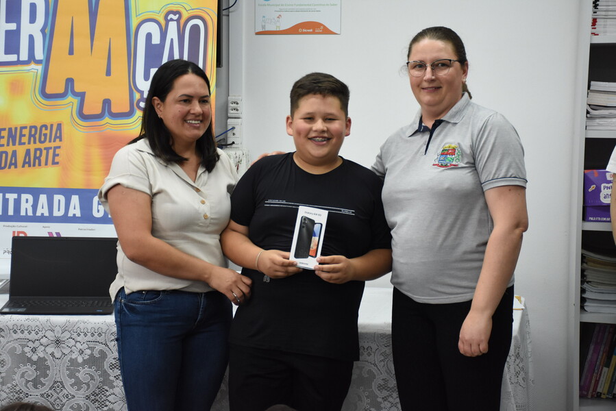 A Vice-prefeita Lenita Zanovello Tomazi, a Secretária de Educação e Desporto Lilian Zechin, a Coordenadora Geral Pedagógica Graziela Anceski, a Diretora da E.M.E.F. Caminhos do Saber Fabiane Brunoni e demais membros da escola, juntamente com os pais dos alunos contemplados, acompanharam este momento.