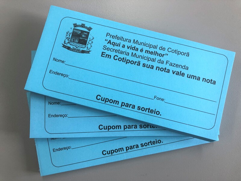 A troca deve ser realizada no Setor de ICMS da Prefeitura Municipal. O sorteio ocorre amanhã, 15 de dezembro, às 16 horas, no Centro Administrativo de Cotiporã.