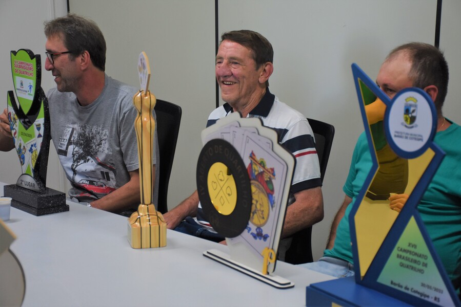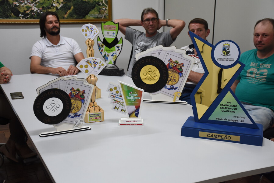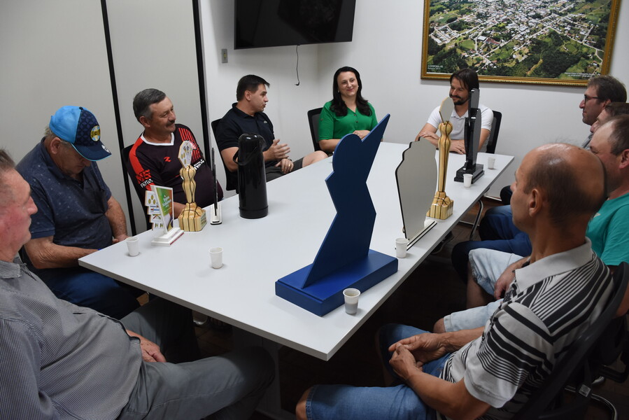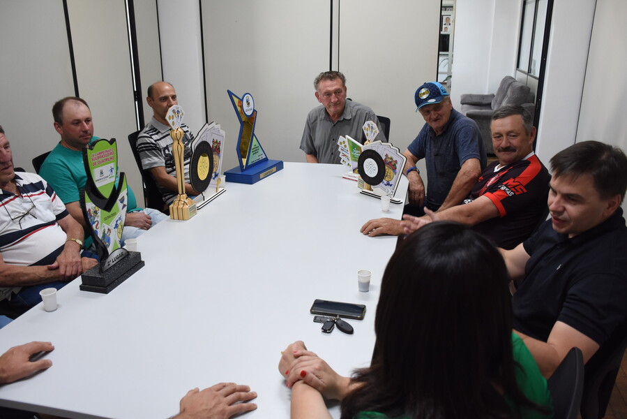 Na tarde de ontem (26), o Prefeito Ivelton e a Vice-prefeita Lenita, juntamente com o Secretário de Agricultura, Meio Ambiente, Indústria e Comércio Ivaldo, receberam os jogadores de quatrilho de Cotiporã.