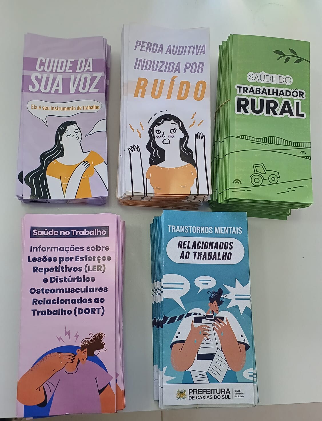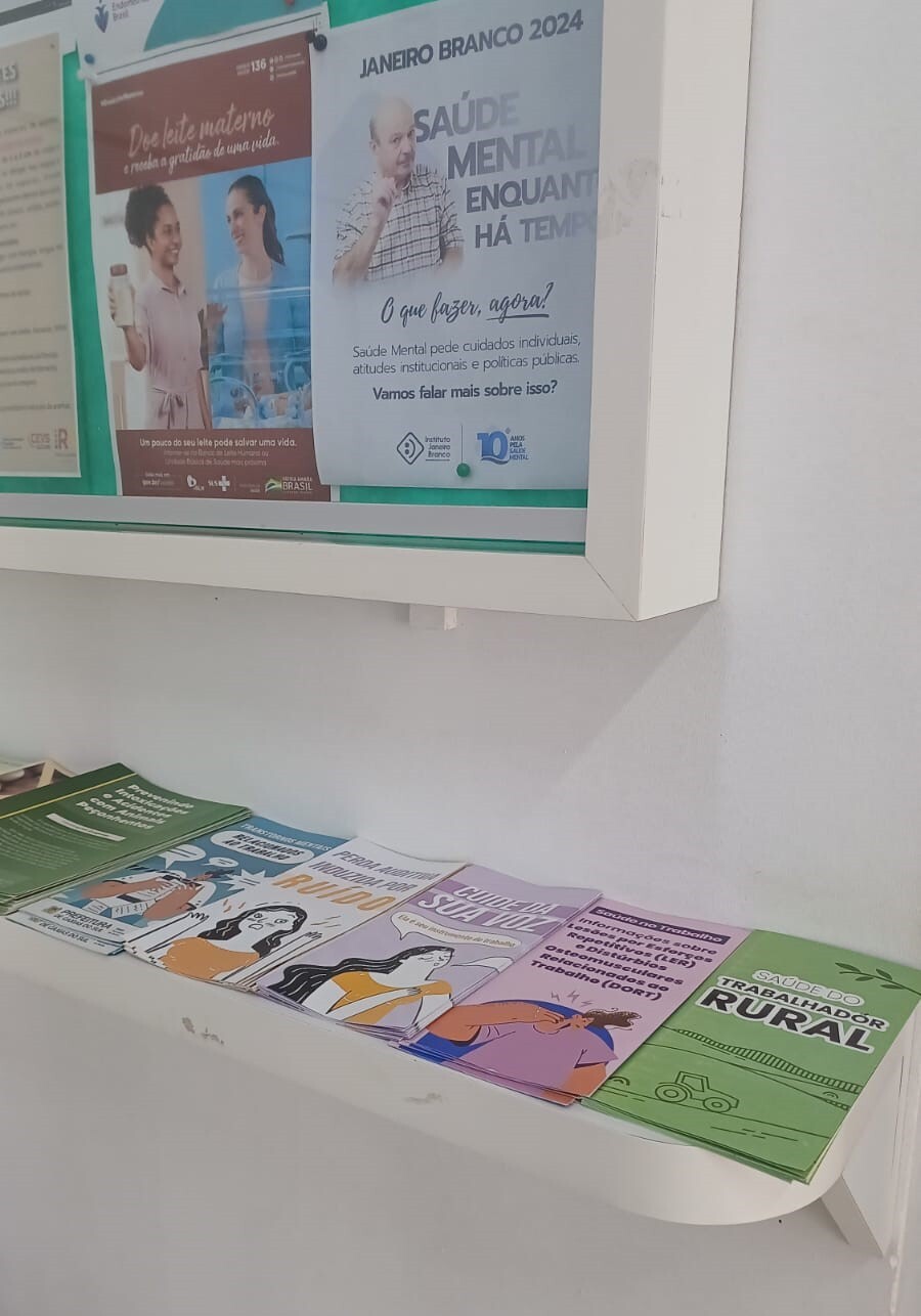 Participaram deste encontro Nicieli Sguissardi, fonoaudióloga do trabalho, e Ben Hur Chamorra, técnico em segurança do trabalho, do Cerest/Serra que, além da roda de conversa, trouxeram materiais informativos sobre as cuidados e doenças relacionadas ao trabalho, disponibilizando acesso a estes conhecimentos tanto para a equipe, quanto para a população. Entre os servidores da equipe municipal de saúde de Cotiporã, estiveram presentes a coordenadora do Departamento de Ações em Saúde, Aricele de Villa, o enfermeiro Altamiro Minuzzo, da Unidade Saúde, a sanitarista Fabiana Nobre, a fiscal sanitária Jussana Breda e o agente de endemias Adão Wons, lotados na Vigilância em Saúde.