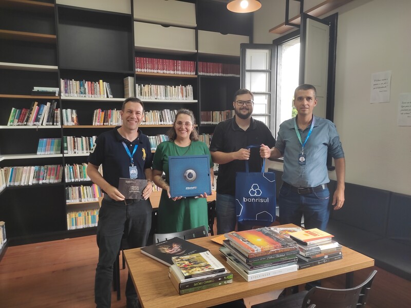 Em fevereiro, o Gerente do Banrisul Edmilson Machado e o Gerente adjunto Alexandre Giordani realizaram a entrega dos livros.