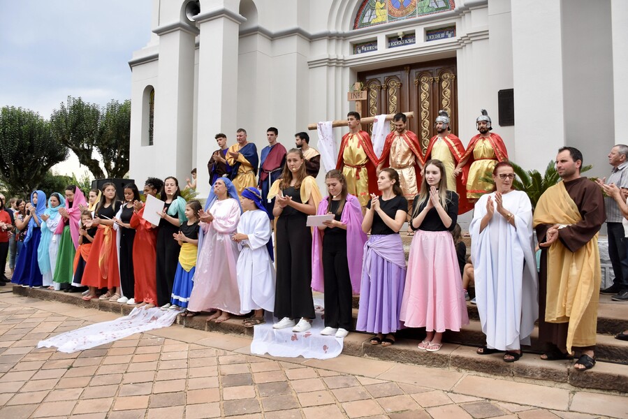 Na Sexta-feira Santa, 29 de março, a comunidade prestigiou a celebração da Paixão e da Morte de Jesus Cristo, com apresentação da Via-sacra realizada pela Companhia Municipal de Teatro Arte in Cena.