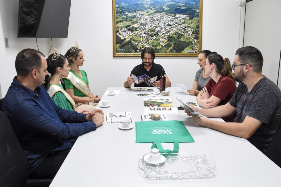 Na tarde de hoje, representantes municipais receberam a comitiva do evento, Rainha Ingrid Lodi Barison e Princesa Amanda Falavigna, acompanhadas pelo Secretário da Agricultura Sidnei Giubel.