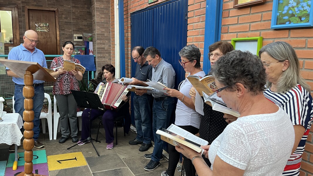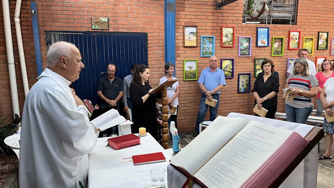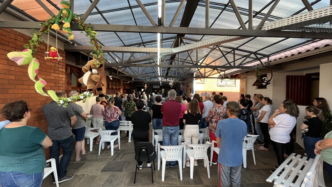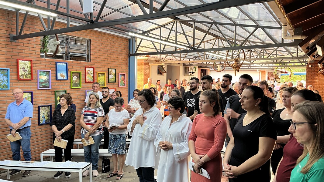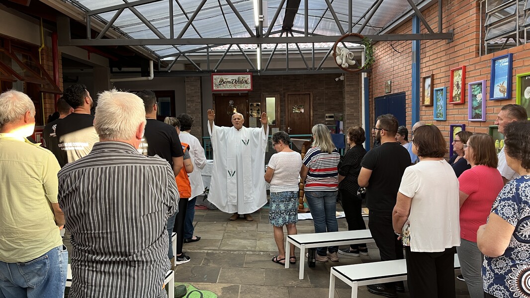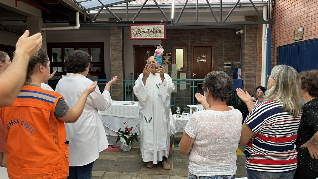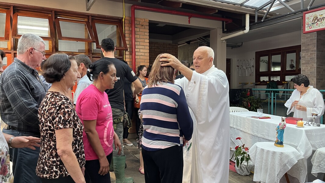 A celebração foi conduzida pelo nosso Pároco Padre Gilberto Lazarotto, junto ao Grupo de Canto e Liturgia, na Escola Municipal de Educação Infantil Amor e Carinho, local de abrigo da população que precisou sair de suas residências.