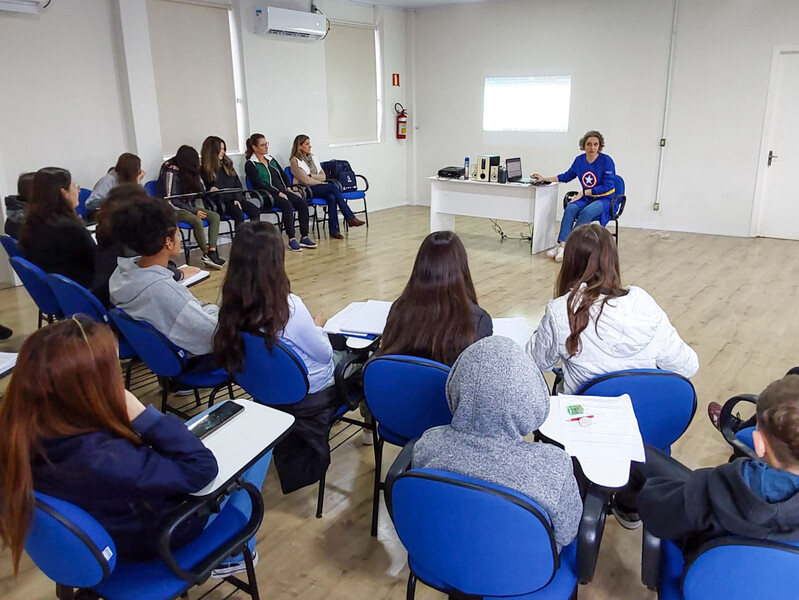 Na terça (21) e na quarta-feira (22), o tema Saúde Mental na Adolescência foi debatido junto aos educandos da E.E.E.M. Professor Jacintho Silva.